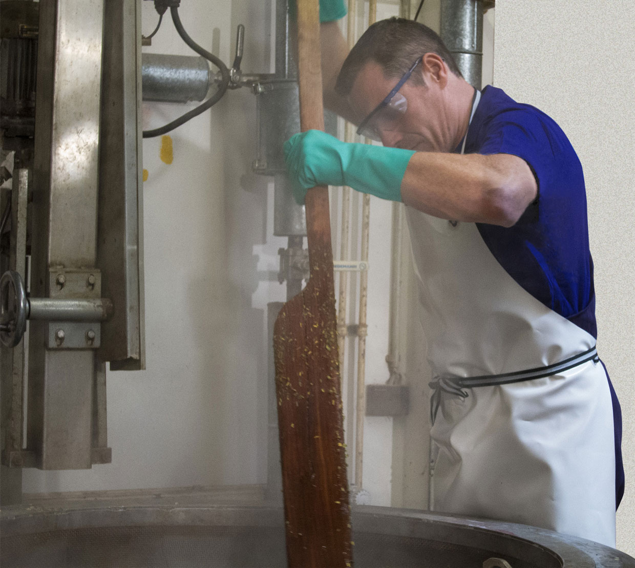 AURO estrae il pigmento giallo, la luteolina, attraverso bollitura esattamente come per la cottura del tè. Pezzi di piante tagliate finemente sono bolliti in acqua leggermente acida con un enorme setaccio messo in un contenitore adatto allo scopo. Dopo che il tempo di bollitura è trascorso, le piante vengono setacciate fuori dall'acqua, mentre il pigmento rimane nel liqauido. Successivamente, il pigmento viene separato dall'acqua mediante un filtro.